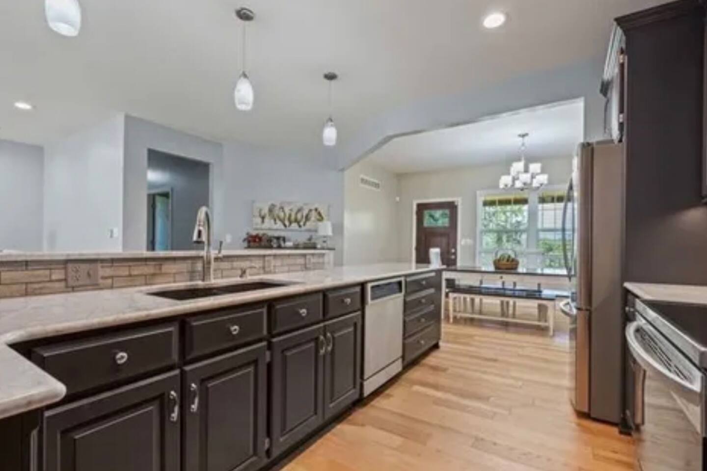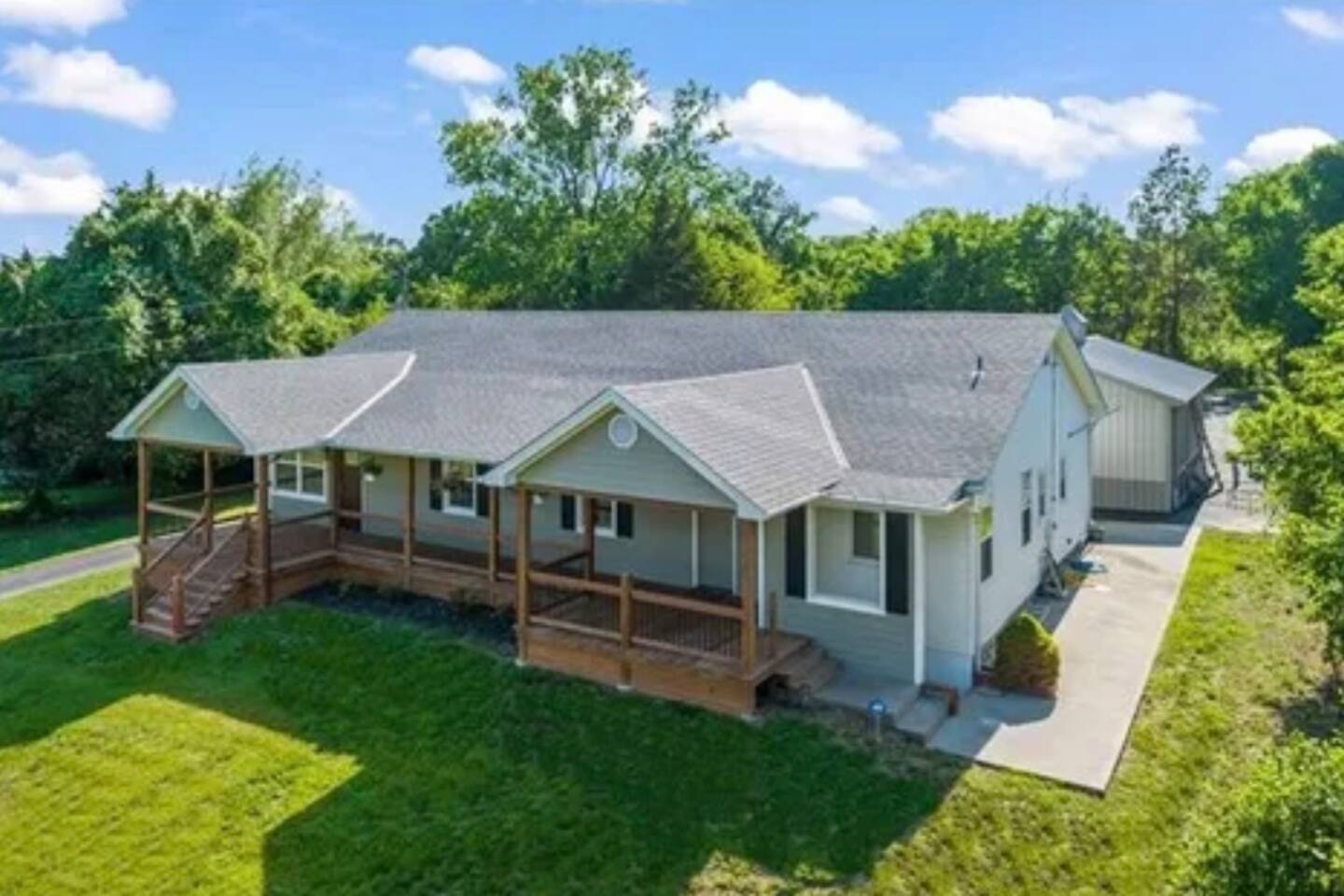 Welcome to your spacious Oak Grove getaway—just 30 miles from Kansas City, offering the perfect mix of peaceful surroundings and easy city access. This large home comfortably sleeps up to 10 guests with 6 beds and 3 full bathrooms, making it ideal for families, groups, or extended stays. Inside, you’ll find an open and inviting layout with plenty of space to spread out, relax, and enjoy time together. The home is designed for comfort and functionality, whether you’re here for work, travel, or a weekend escape. Step outside and enjoy the outdoor BBQ grilling area—perfect for cookouts, evening dinners, and making memories with your group. With ample space both indoors and outdoors, this property is great for entertaining or simply unwinding after a long day. Conveniently located near Kansas City, you’ll have quick access to dining, shopping, and attractions while still enjoying a quiet, residential setting. Room1: king bed Room2: full size bed Room3: queen bed Room4: queen bed Room5: queen bed Room6: twin bed * can provide blowup mattress additional $100 Pets welcome! No parties! Whether you’re visiting for business, family time, or a group trip, this home offers the space, comfort, and amenities you need for a great stay.